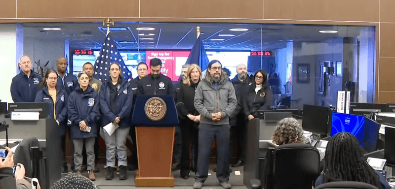 A “Blizzard” Gives Mayor Zohran Mamdani Pretext for a “Climate Lockdown”We won’t be fine, here in New York, if our rights are restricted again so that we are absolutely physically helpless against any attack that may come — perhaps from the Mayor.BY NAOMI WOLF View original article at Brownstone.org. It’s snowing. Outside the big picture windows of the flat where we stay when we come to Brooklyn, a gentle snow falls. It gusts in the bare tree branches that reach up to the grey-yellow sky. The trees shake back and forth in the wind. The snow-laden branches stand between us and what are the usually chaotic backyards of the row of dilapidated late 19th century townhouses across from us. The backyards, and their everyday detritus, have receded under the snowfall, to reconfigure into a vague elegance. Plastic chairs and rotting wooden picnic tables have been buried under a thick blanket of white. There is about a foot and a half of snow resting across the roofs of the townhouses, gentling their outdated television antennas and their crooked skylights. Everything looks like frosting on a wedding cake. Everything looks like an old-fashioned Christmas card; the kind — are you my age or older? — that they used to have in the mid-1960s, that had silver glitter glued to the white snow, that came off a bit on your fingers. The snow layering the roofs and balconies and railings makes Brooklyn look like the archetypal German or Swiss village on Christmas cards, nestled in wintry softness, as seen far below Santa’s descending sleigh. This blizzard — or “blizzard;” it seems to me better described as a “snowfall” — has been heralded by legacy media now for a couple of days. The language about it has been histrionic. It is a “bomb cyclone!” It is “SEVERE WEATHER” that requires an “ALERT!” A red rectangle on the weather sites, surround those scary words. You can’t travel. But it’s not just that you are being advised not to travel, as a sovereign person, as in the past. There are “TRAVEL BANS.” CNN warns, “Blizzard Travel Bans Remain in Effect as Five States Have Over 2 Feet of Snow.” The headlines’ freakout conceals the fact that this snowfall is within the range of normal, for the Northeastern United States. While CNN has found that this is the biggest snowfall on record for one city — Providence, Rhode Island — you have to click through several links and read carefully to find out that the last time it snowed THIS MUCH in New York City was…five years ago. And this storm has dropped the MOST snow in NYC since that one in…2021. The New York Post headline calls this storm’s snowfall “HISTORIC” — though the fine print shows that the last such storm was in…2016. Same with Philadelphia. This is Philadelphia’s snowiest winter since…2018. So basically — if you read carefully and critically — you realize that the snow is falling well within, again, the range of what is normal for winter in the Northeast. In 1947, the snow measured over 26 inches in Central Park: Today at JFK Airport, in contrast, the snow is about 15 inches deep. In 1888, 21 inches of snow fell in 24 hours; eventually snow in that snowstorm accumulated to snowbanks almost five feet high. 1888: 1888: 1888: In spite of the fact that receiving up to two feet of snow in winter in New York City is entirely normal, the headlines drumming up hysteria have prepared the way for what is unfolding right now via City Hall, and via our still-new-on-the-job Marxist-Islamist Mayor, Zohran K Mamdani. A pure Marxist-islamist rights takeover; a trial run. In a press conference on Sunday February 22, 2026, Mayor Mamdani showed a range of sombre city administrators arrayed behind him, all of them wearing sad faces and holding their hands clasped in front of them. I note the flimsy branded sweatshirts and windbreakers, both zipped and unzipped, and the almost theatrically glum faces of Mamdani’s “crisis team.” I feel that this entire iconography is part of the Theatre of Humiliation to which Mamdani is deliberately subjecting our city, just as the Biden era’s women’s-luggage-stealing advisors, its obese health commissioners, its staffers with their publicly broadcast fetishes involving dog masks and leashes, and its pics of sex somehow managed in Congressional hearing rooms (you need security clearance just to get into those spaces) — were all part of a staged Theatre of Humiliation, aimed at our country as a whole, that was similarly designed and produced by our enemies at that time, for similar reasons. To reduce and degrade us. As a reader of political iconography, I can tell you that this image of Mayor Mamdani’s press conference — in front of a random digital ad in the background for Spotify; with the Stars and Stripes not clearly visible at all; with one staffer holding her cellphone, as if she can’t be bothered to put it away; with staffers wearing what look like sweatpants, or last year’s Target jeans, and work boots; with a woman in the front row, who no doubt works at a computer, having mysteriously rolled up her pants cuffs to a depth of at least two inches; and the woman to her right, who also probably works at a computer station, having tucked her pants cuffs into her boots, as if these women and men are the proletariat who have been slogging through the snowy, treacherous marshes of the hinterlands of Lower Manhattan to get their jobs done, instead of having arrived neatly by subway or Uber; with the longhaired male sign language translator having failed either to brush or comb his disheveled tresses — in all of it, and it is all carefully thought out, this image says: here are the sad weak people — but workers! See their trouser cuffs! — who are now in charge of the safety and security of America’s greatest city: It is a messaging of pure, bleak defeated Marxism. Men, women, it does not matter; professionals, laborers — no matter; the “te